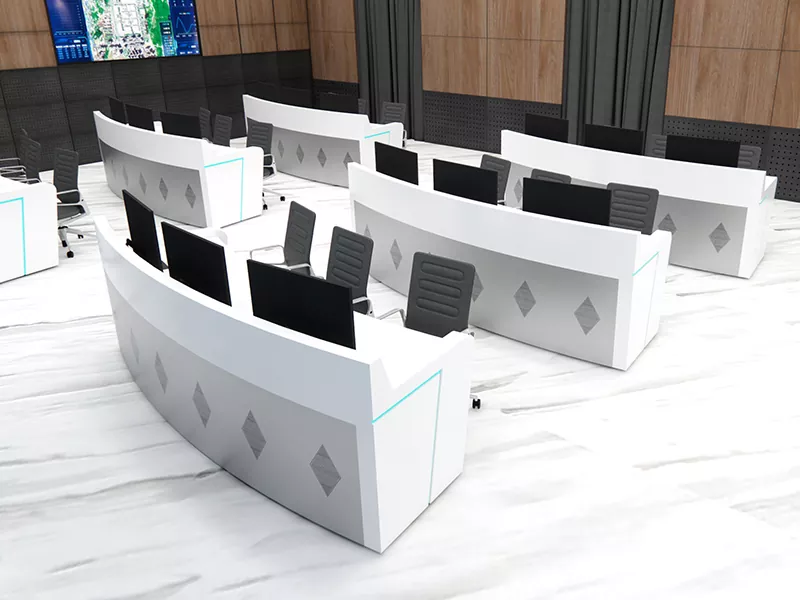 Tairgeann Temei Rui seirbhís shaincheaptha lánshlabhra, ó mheasúnú riachtanas tosaigh agus dearadh réitigh spás-oiriúnaitheach go déantúsaíocht bheacht agus coimisiúnú agus suiteáil ar an láthair - réiteach aon-stad. Tacaíonn sé le dearaí saincheaptha do struchtúir neamhrialta cosúil le cumraíochtaí cuartha agus cúinne, chomh maith le dearaí modúlach, ag uasmhéadú úsáid spáis láithreáin. Ina theannta sin, ionchorpraíonn sé dearadh eirgeanamaíochta agus córas cáblaithe dea-eagraithe, a chothromaíonn compord oibriúcháin agus éascaíocht cothabhála, ag soláthar tacaíochta trealaimh ardchaighdeáin d'ionaid cheannais in earnálacha an rialtais, an iompair agus na slándála.