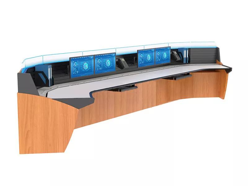Is stáisiún oibre seomra rialaithe gairmiúil é Consól Monatóireachta Suíochán Dúbailte atá deartha chun tacú le dhá oibreoir atá ag obair go comhuaineach laistigh de thimpeallacht monatóireachta nó ordaithe roinnte. I gcomparáid le consóil aon suíochán nó córais mhóra ilshuíocháin, cuireann sé an chothromaíocht is fearr ar fáil idir éifeachtúlacht chomhoibrithe, úsáid spáis, agus rialú costais.
