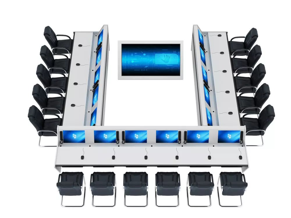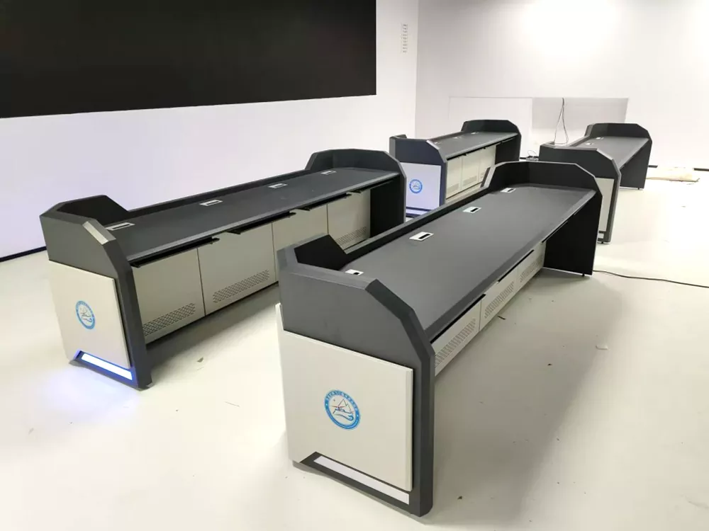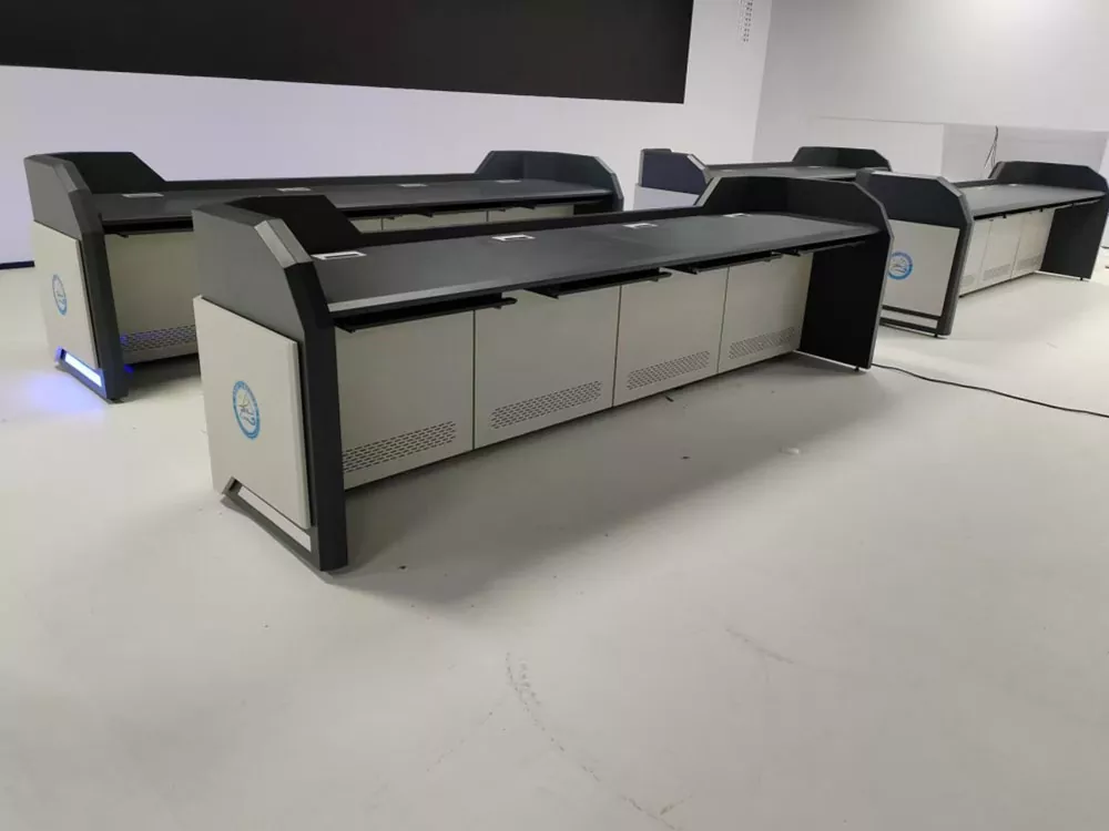Gnéithe an táirge dearadh modúlach, le aonad amháin mar an t-aonad bunúsach is féidir a leathnú go solúbtha ar fad chun oiriúnú do leagan amach spásúlachta éagsúla. Uasmhéadaíonn a chruth líne dhíreach glan agus simplí an úsáid a bhaintear as spás an tseomra monatóireachta agus é ag éascú leagan amach eagraithe ilstáisiúin oibre agus comhoibriú pearsanra. Déanta as pláta cruach fuar-rollta ard-neart trí phróiseáil leatháin mhiotail bheachtais, déantar an dromchla a chóireáil le sciath púdar leictreastatach, rud a fhágann go bhfuil sé meirge-cruthúnas, caitheamh-resistant, agus éasca a ghlanadh agus a chothabháil.