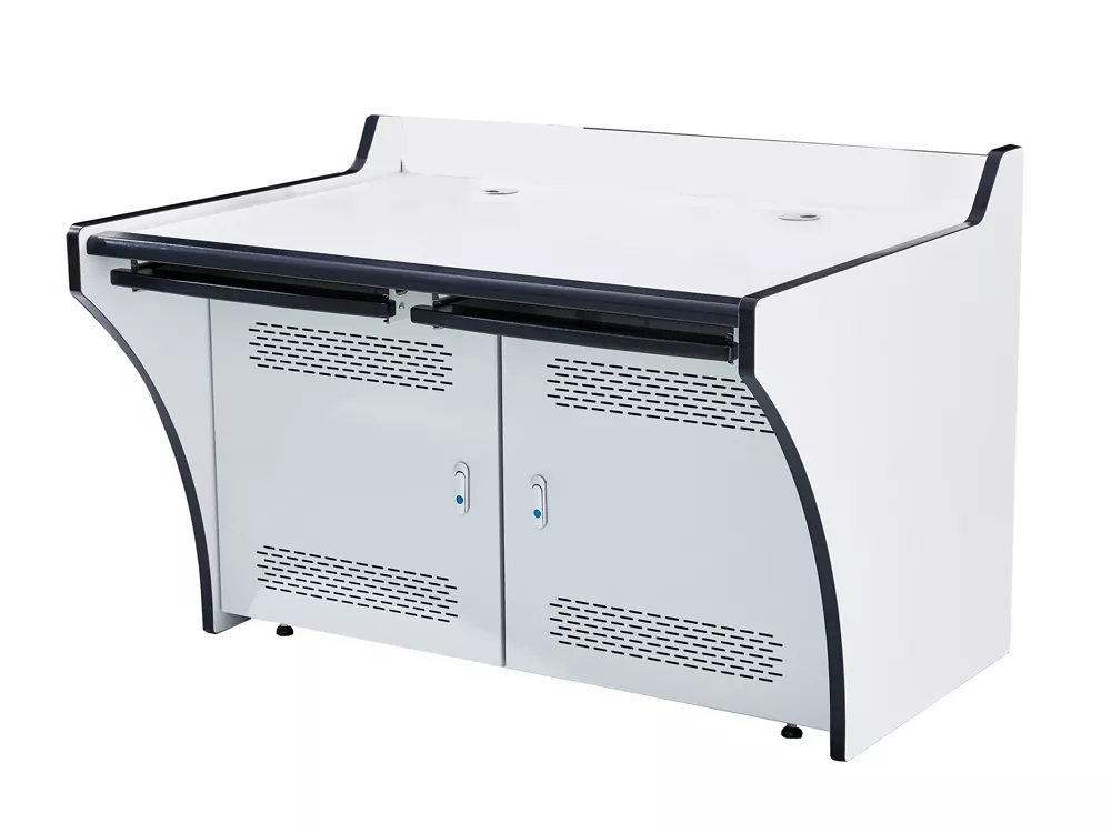 1. Solúbthacht Ard-Saincheaptha: Tacaíonn an mhonarcha le saincheaptha iltoiseach pearsantaithe, ag clúdach tiús countertop, dath sciath púdar, tarraiceáin stórála, poill aerála, agus suíomhanna poll bainistíochta cábla. Déantar an struchtúr a bharrfheabhsú bunaithe ar riachtanais an cháis, é a oiriúnú go beacht do threalamh agus spás, ag cothromú indibhidiúlacht agus praiticiúlacht.
