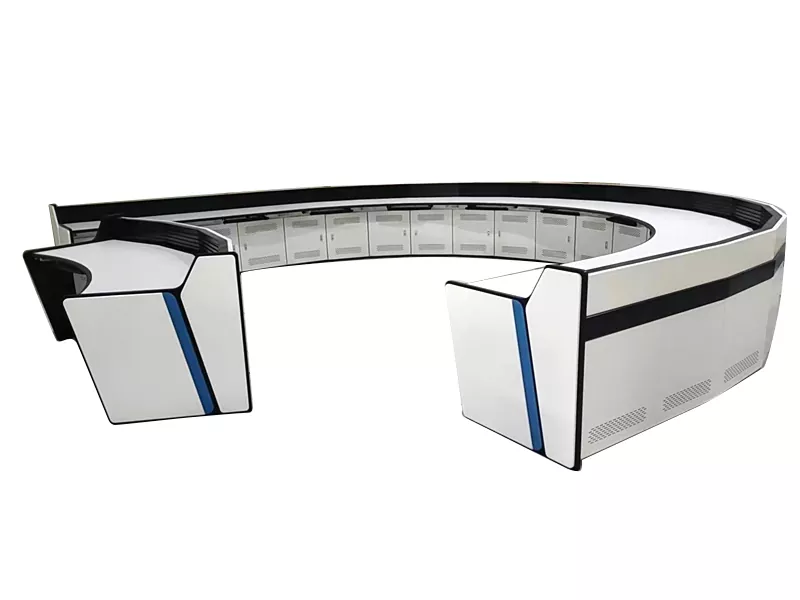 Is é an buntáiste lárnach atá ag consól monatóireachta U-chruthach Temei Rui ná a leagan amach eolaíoch U-chruthach. Tá oibreoirí lonnaithe sa limistéar lárnach, ag fáil íomhánna fíor-ama agus sonraí ó iltreonna ag an am céanna, ag feabhsú go mór luas freagartha faisnéise agus éifeachtúlacht cinnteoireachta orduithe, rud a fhágann go bhfuil sé oiriúnach go háirithe d'ionaid mhóra ordaithe agus seolta.
