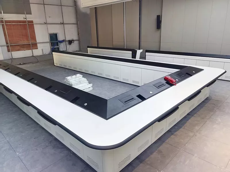 Is féidir leis na limistéir leathnaithe ar an dá thaobh freastal ar níos mó príomhfhrámaí, monatóirí agus trealamh cumarsáide. Cinntíonn an córas bainistíochta cábla folaithe inmheánach ródú cábla soiléir agus cothabháil áisiúil, agus ag an am céanna soláthraíonn sé pasáiste leordhóthanach chun freastal ar riachtanais obair chomhoibríoch il-duine, ag cabhrú le custaiméirí timpeallacht lárionad ordú caighdeánaithe agus ordúil a thógáil.